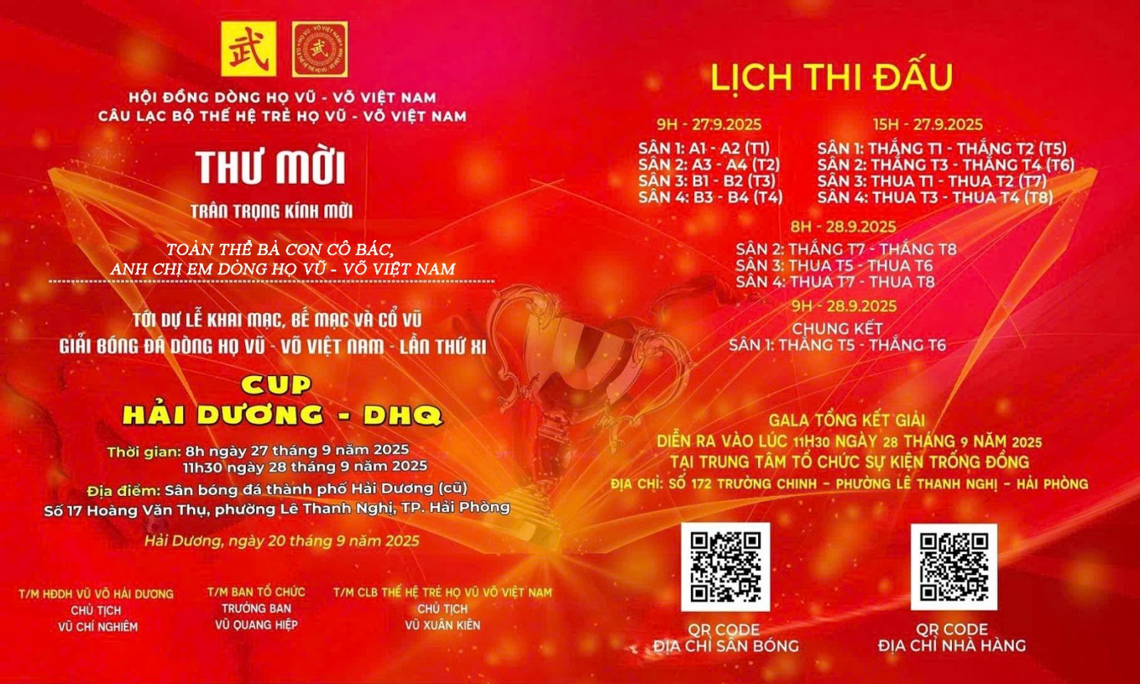 Xin chúc cho giải đấu thành công rực rỡ, tiếp tục khẳng định tinh thần thể thao – đoàn kết – đồng tộc của đại gia đình Vũ – Võ Việt Nam!