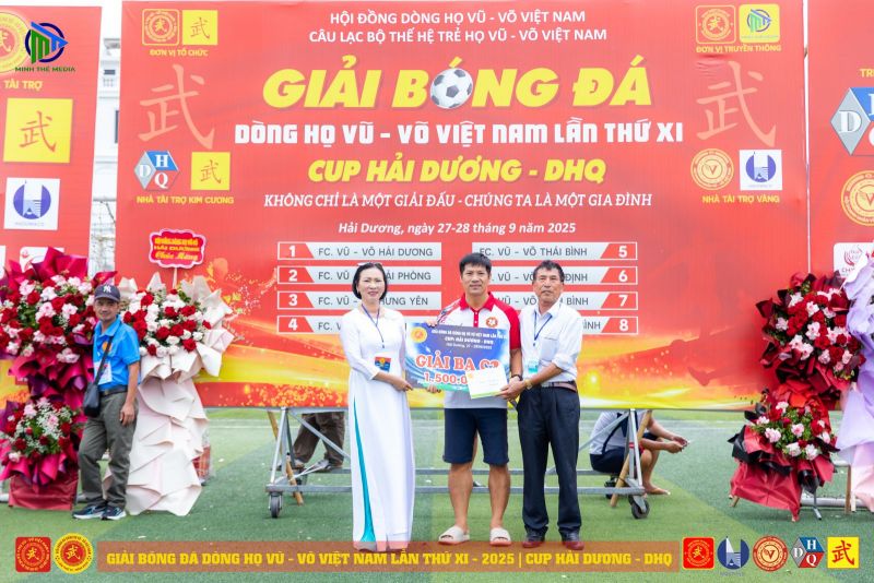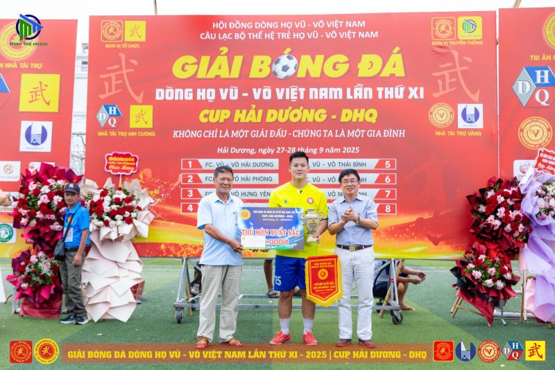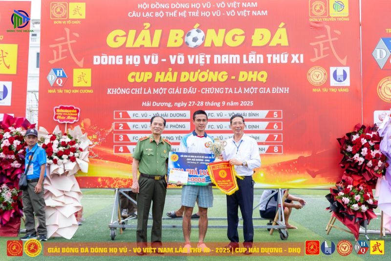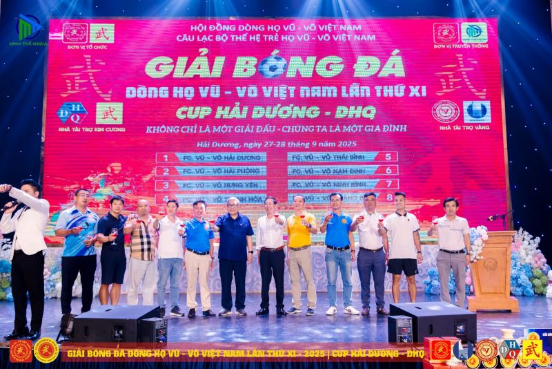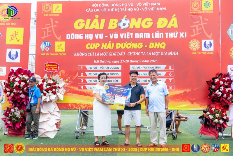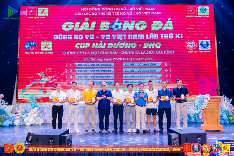 (VVHP) - Sau 2 ngày thi đấu, Giải Bóng đá Dòng họ Vũ - Võ Việt Nam lần thứ XI - năm 2025 đã thành công rực rỡ. Đội chủ nhà FC Vũ - Võ Hải Dương đã bảo vệ thành công chức Vô địch; đội Hải Phòng giành ngôi Á quân, đội Hưng Yên đạt giải Ba, đội Quảng Bình đạt giải Tư. Tiếp sau đó, đội Ninh Bình giành giải Nhất C2, cùng các giải 2, 3, 4 của C2 lần lượt thuộc về các đội: Thanh Hóa, Thái Bình, Nam Định.