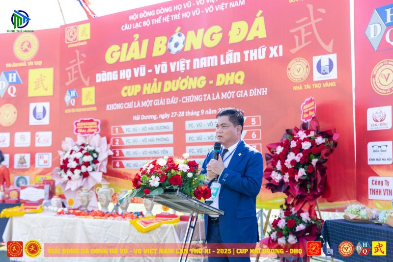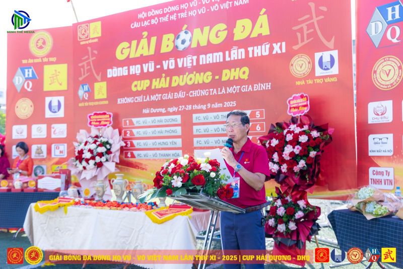 Phát biểu chỉ đạo tại Lễ khai mạc, ông Vũ Nguyên Thái, Phó Chủ tịch HĐDH Vũ - Võ Việt Nam, Phó Chủ tịch Thường trực Hội Doanh nhân họ Vũ - Võ Việt Nam, Chủ tịch HĐDH Vũ - Võ TP Hải Phòng, Trưởng Ban Chỉ đạo giải đấu cho biết: Giải Bóng đá Dòng họ Vũ - Võ Việt Nam lần thứ XI là năm thứ 3 HĐDH Vũ - Võ Việt Nam trực tiếp chỉ đạo cũng như vận động tài trợ và tạo mọi điều kiện để công tác tổ chức giải đấu diễn ra thành công.