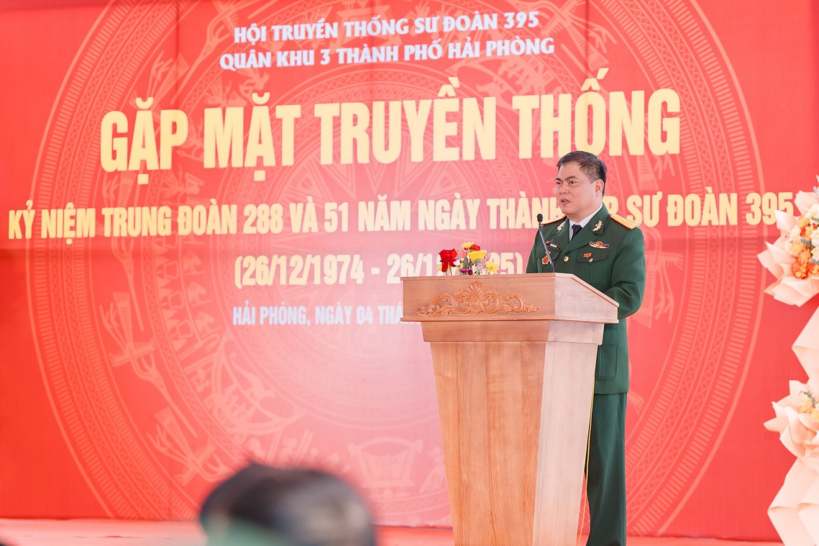 Chương trình gặp mặt là hoạt động được tổ chức thường niên, nhằm tri ân các anh hùng liệt sỹ của Sư đoàn 395, đồng thời ôn lại những kỷ niệm khó quên trong giai đoạn chiến đấu bảo vệ biên giới phía Bắc. Đặc biệt, tại mặt trận Cao Ba Lanh (Bình Liêu, Quảng Ninh) trong cuộc chiến tranh biên giới năm 1979, Sư đoàn 395 đã chiến đấu kiên cường, góp phần bảo vệ vững chắc địa bàn Đồng Văn – Bình Liêu. Trong những năm tháng khốc liệt ấy, đã có hơn 100 cán bộ, chiến sỹ của đơn vị anh dũng hy sinh tại khu vực Cao Ba Lanh, để lại biểu tượng sáng ngời về lòng dũng cảm và tinh thần bất khuất.
