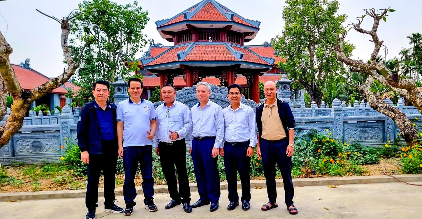 Anh em nhóm ATVV " Ấm tình Vũ Võ" chụp ảnh lưu niệm tại Khuôn viên Đền Nam Hải