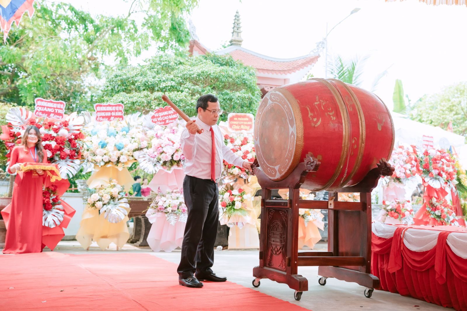 Ông Phạm Hưng Hùng UVTU, Bí thư Đảng ủy phường Thủy Nguyên thực hiện nghi thức đánh trống khai hội.
