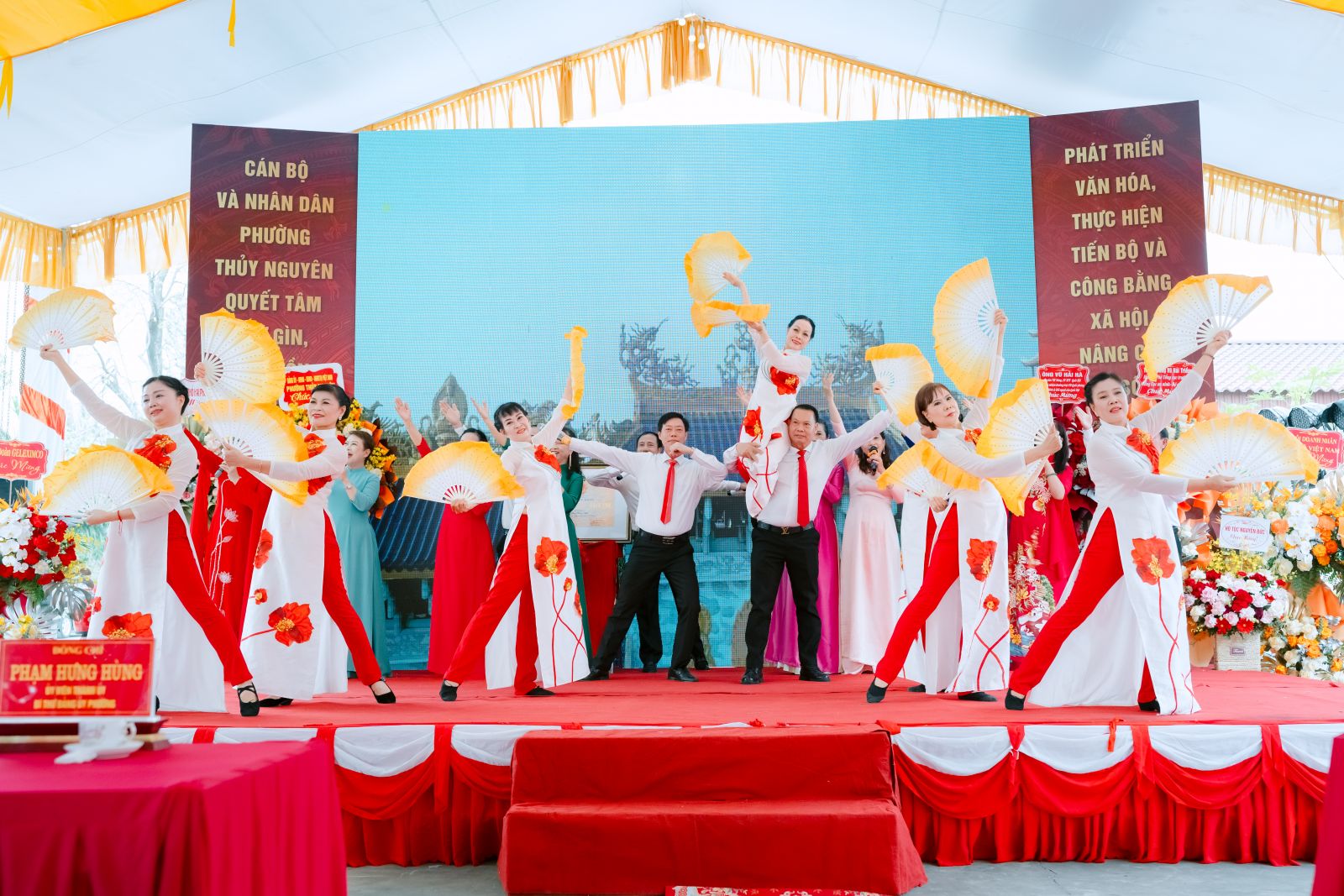 Buổi tối cùng ngày, chương trình giao lưu văn nghệ quần chúng diễn ra sôi nổi với sự tham gia của các câu lạc bộ văn nghệ tổ dân phố, tạo không khí ấm áp, gắn kết cộng đồng, góp phần làm phong phú đời sống văn hóa tinh thần của Nhân dân trước ngày chính lễ.