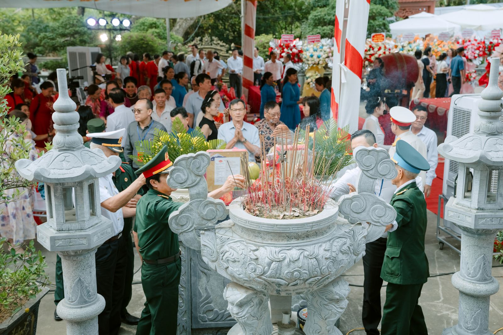 Đoàn đại biểu lãnh đạo địa phương cùng Nhân dân thực hiện nghi lễ dâng hương.