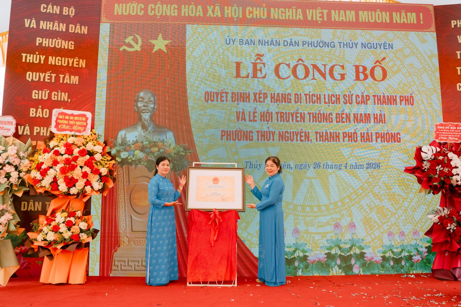 Trong hai ngày 25–26/4/2026, tại khuôn viên Đền Nam Hải (TDP Sáu Phiên, phường Thủy Nguyên, thành phố Hải Phòng), UBND phường Thủy Nguyên đã long trọng tổ chức Lễ công bố Quyết định xếp hạng di tích lịch sử cấp thành phố và Lễ hội truyền thống Đền Nam Hải năm 2026